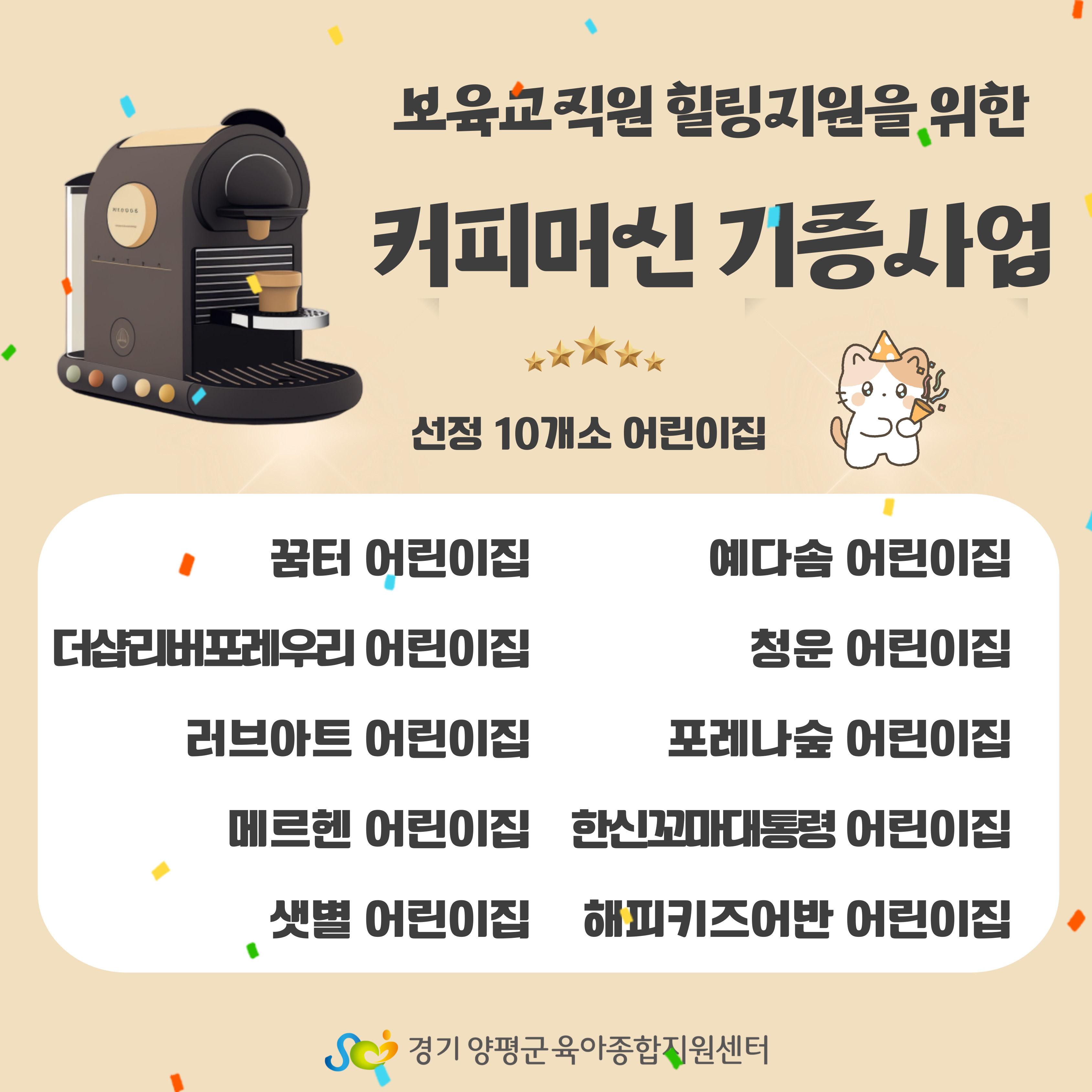 ★2025년 보육교직원 힐링지원을 위한 커피머신 기증사업 선정 기관 발표 ★