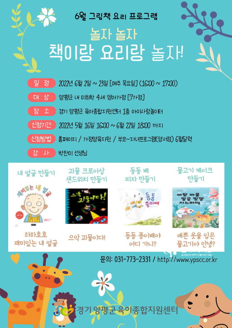 | 6월 놀자 놀자! 책이랑 요리랑 놀자 [4세] | |||