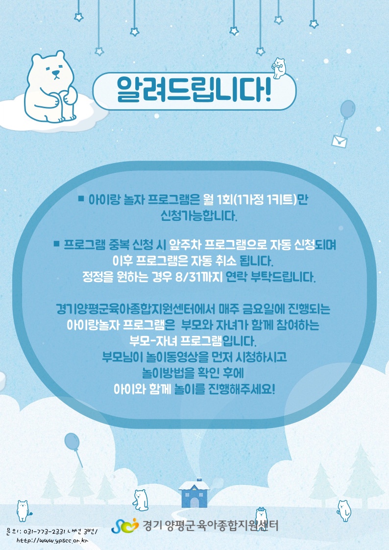 | 기타사항 | * 비고란에 수령처(예, 양서점, 양평점) 적어주시기 바랍니다. !!미기재 시 양서점으로 자동 수령처가 됩니다.!! * [꼭 ~ 읽어 주세요] 를 필독 바랍니다. -1가정 1키트 방식입니다. - 만족도 설문지와 사진 후기 미 제출 시 다음 프로그램 신청에 제한이 될 수 있습니다. <만족도 설문지 URL 접속 : 개인 휴대폰으로 전송> - 패널 티 관련 - 본인 실수로 인한 무효 처리는 책임지지 않습니다. - 본 영상의 저작권 관련 [해당 프로그램 취소 방법은 070-4190-3155번으로 연락 바랍니다.] |