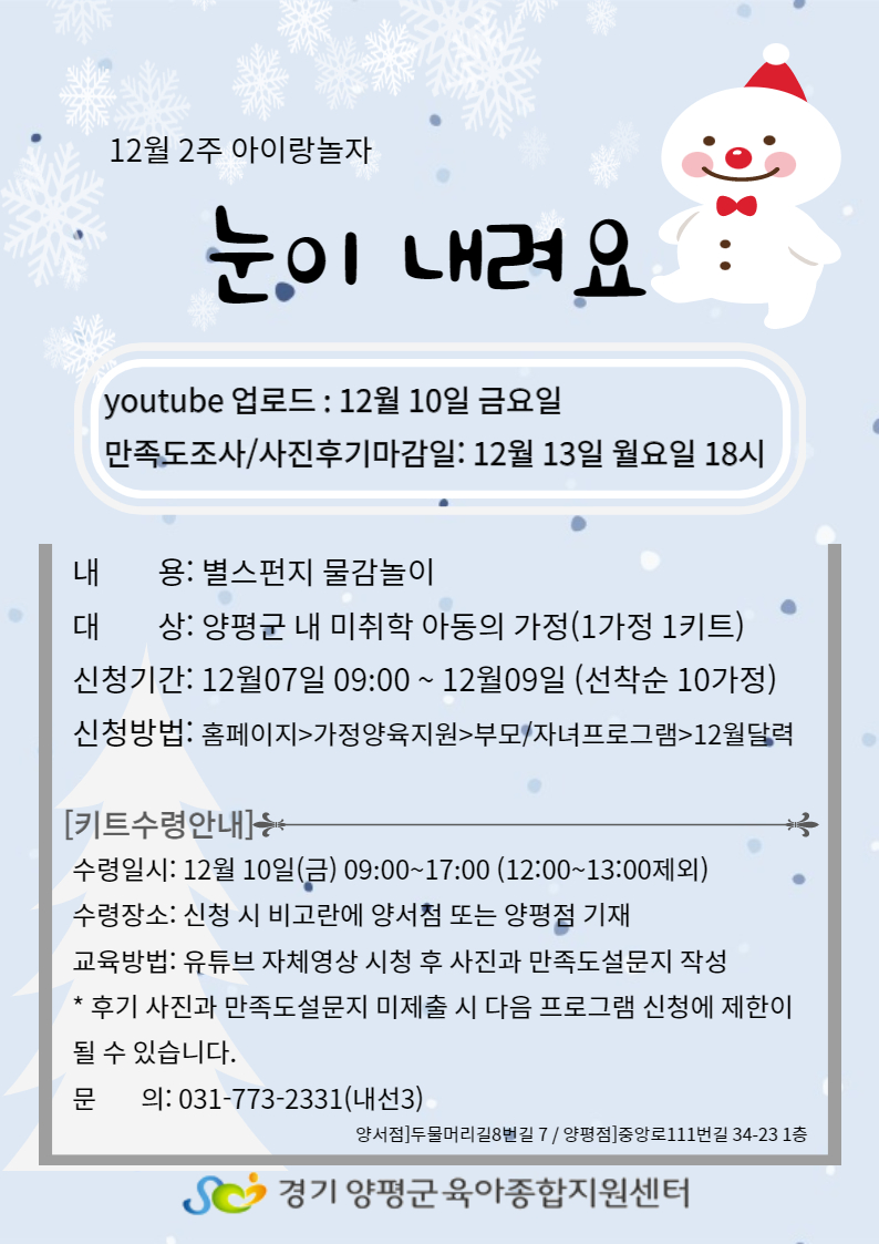 [아이사랑놀이터 양서] 12월2주 아이랑놀자 프로그램 - 눈이내려요