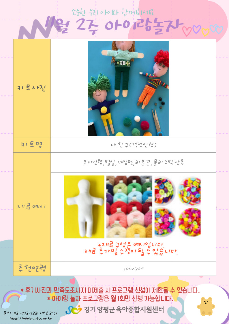 | 11월 2주 아이랑 놀자! [내 친구(걱정인형)] | |||