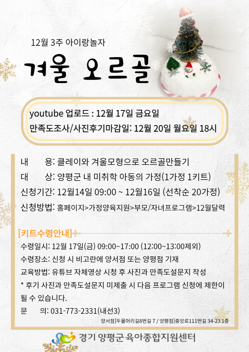 [아이사랑놀이터 양서] 12월3주 아이랑놀자 프로그램 - 겨울 오르골