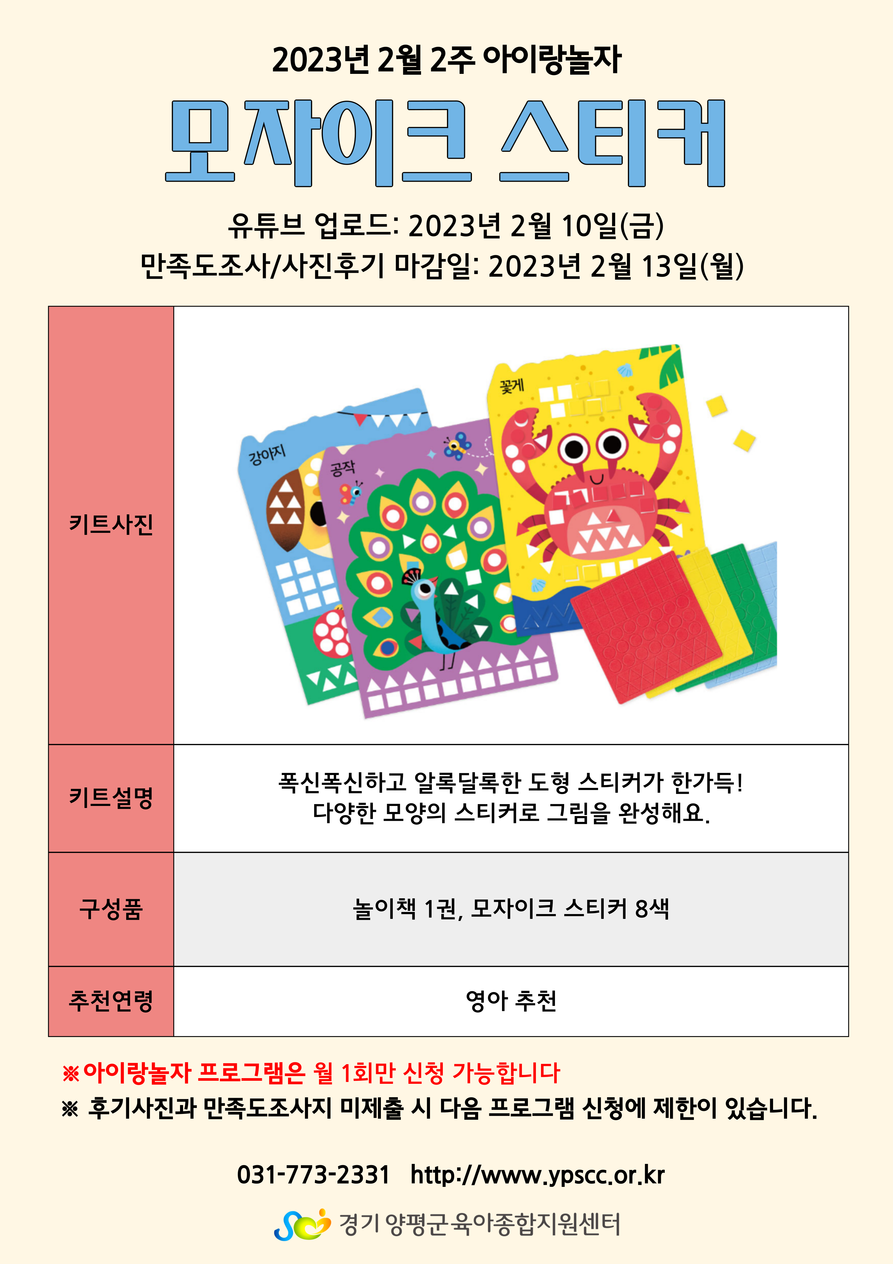 | 2월 2주 아이랑놀자! [모자이크 스티커] | |||