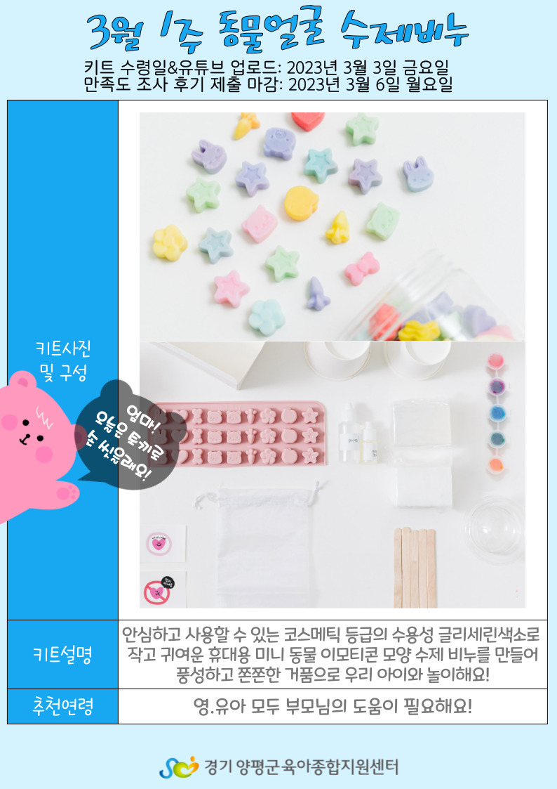 | 3월 1주 아이랑 놀자! [동물얼굴 수제비누] | |||
