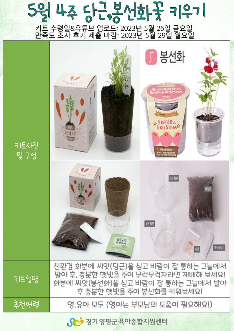 | 5월 4주 아이랑놀자! [당근, 봉선화 키우기] | |||