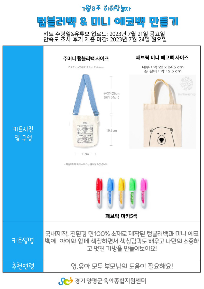 7월 3주 아이랑놀자! [텀블러백 & 미니에코백 만들기]