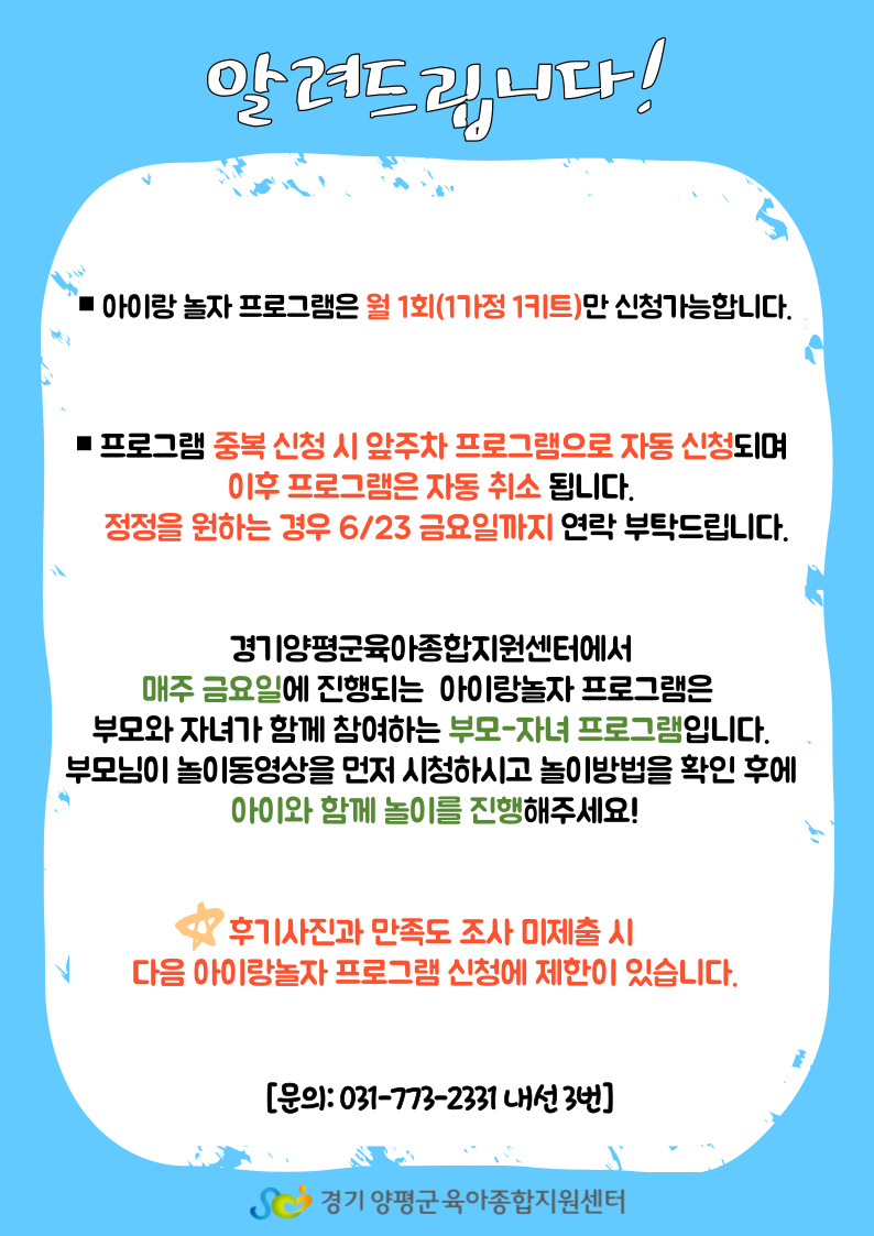 행복이 자라는 희망을 드리는 경기양평군육아종합지원센터 입니다.