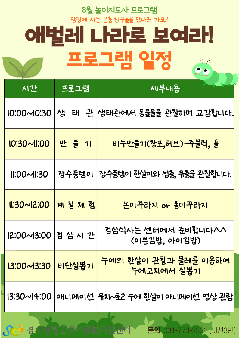 | [8월 놀이지도사 프로그램] 애벌레 나라로 모여라! | |||
