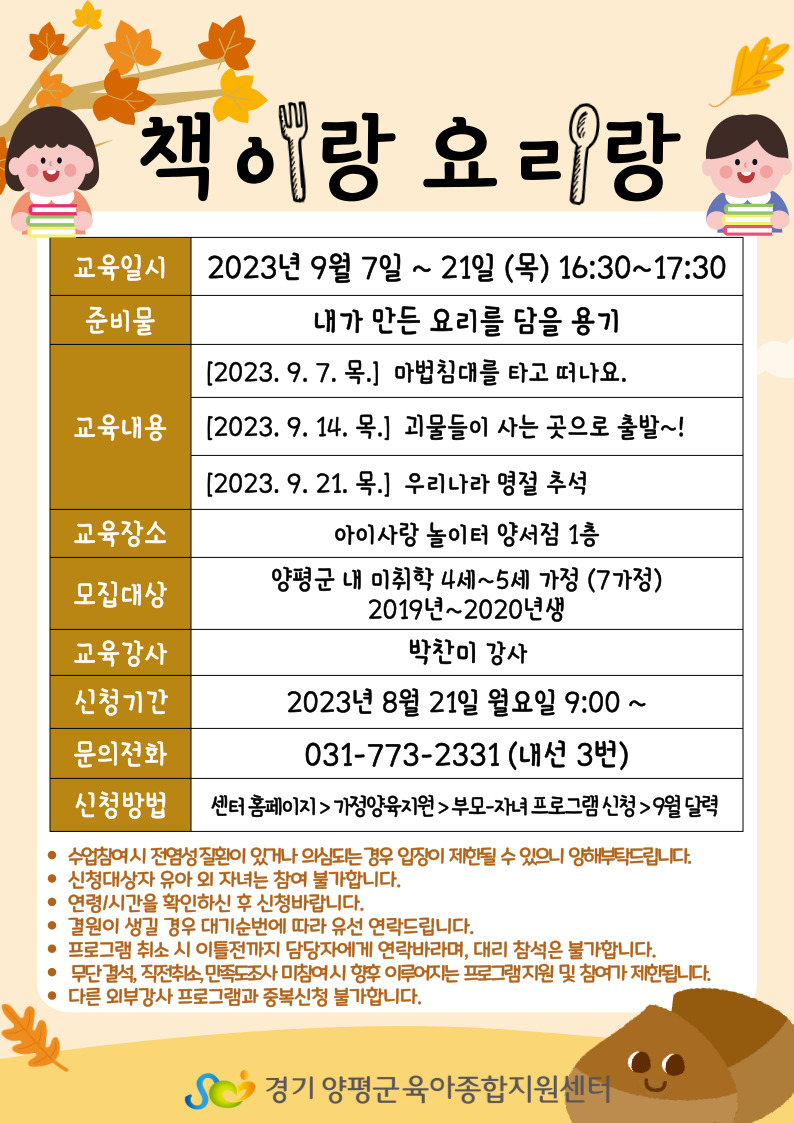 | 9월 책이랑 요리랑 놀자 [4~5세] | |||