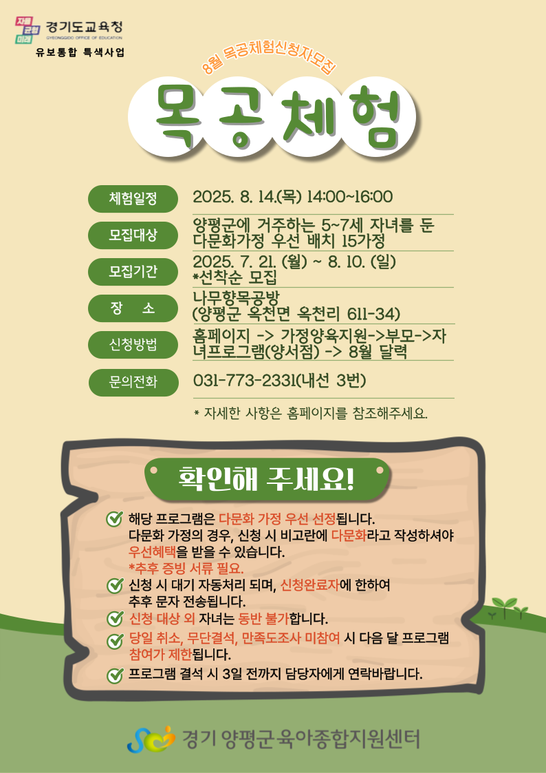 8월 부모-자녀 체험프로그램 [목공 체험]