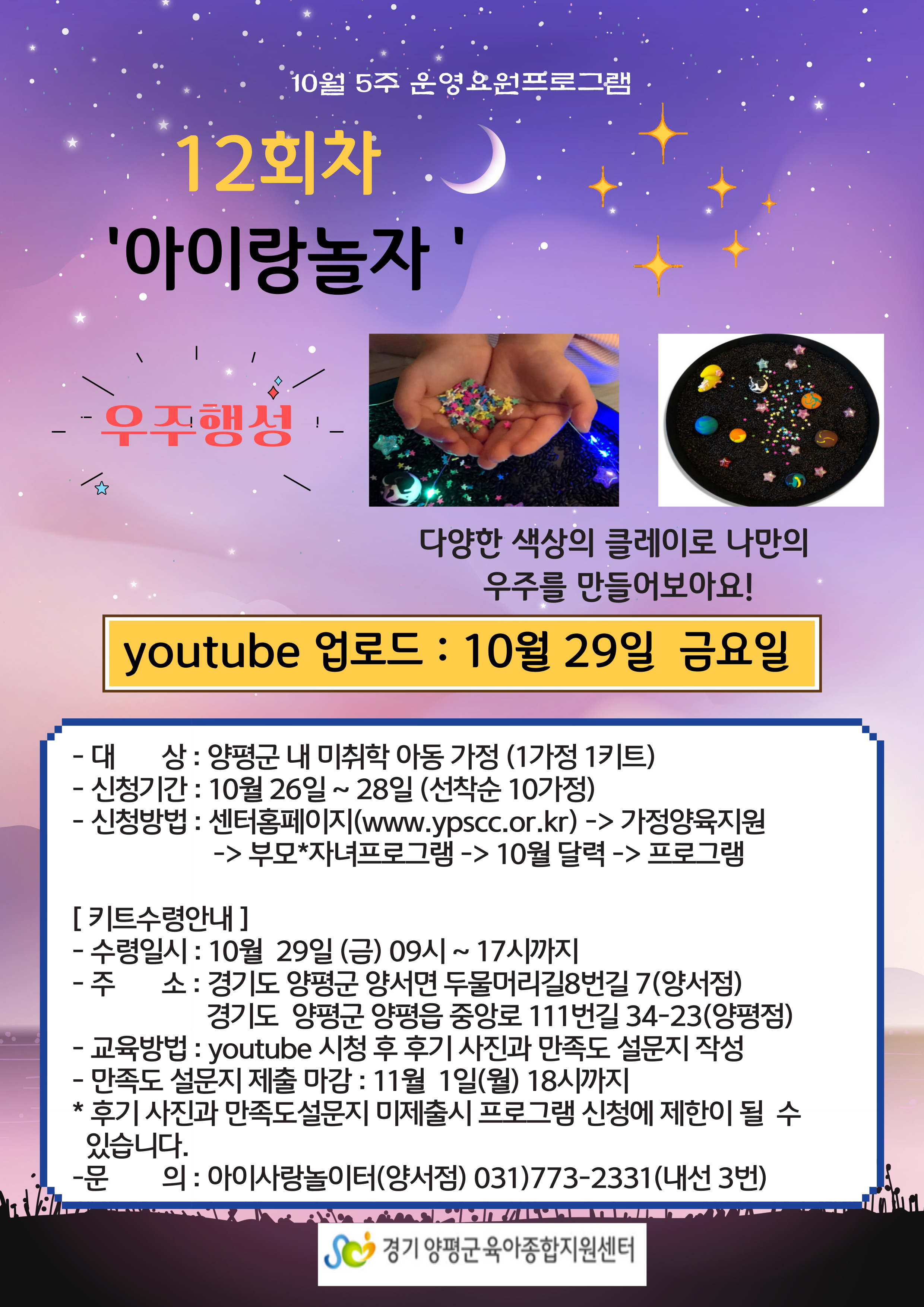| [아이사랑놀이터 양서] 10월 5주 아이랑놀자 프로그램 우주행성 | |||