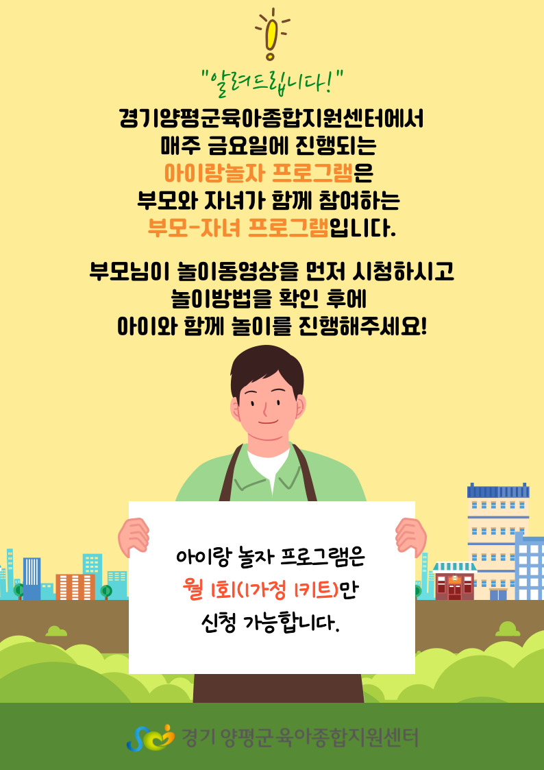 | 기타사항 | * 비고란에 수령처(예, 양서점, 양평점) 적어주시기 바랍니다. !!미기재 시 양서점으로 자동 수령처가 됩니다.!! * [꼭 ~ 읽어 주세요] 를 필독 바랍니다. -1가정 1키트 방식입니다. - 만족도 설문지와 사진 후기 미 제출 시 다음 프로그램 신청에 제한이 될 수 있습니다. <만족도 설문지 URL 접속 : 개인 휴대폰으로 전송> - 패널 티 관련 - 본인 실수로 인한 무효 처리는 책임지지 않습니다. - 본 영상의 저작권 관련 [해당 프로그램 취소 방법은 773-2331(내선1)번으로 연락 바랍니다.] |