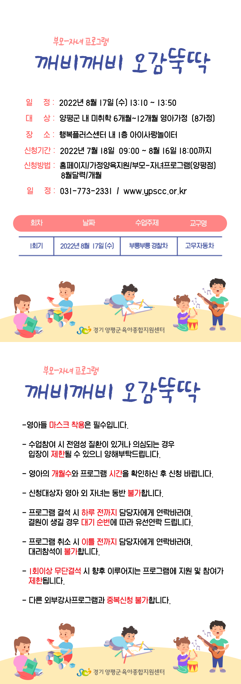 - 영아의 개월수와 프로그램 시간을 확인하신 후 신청 바랍니다.