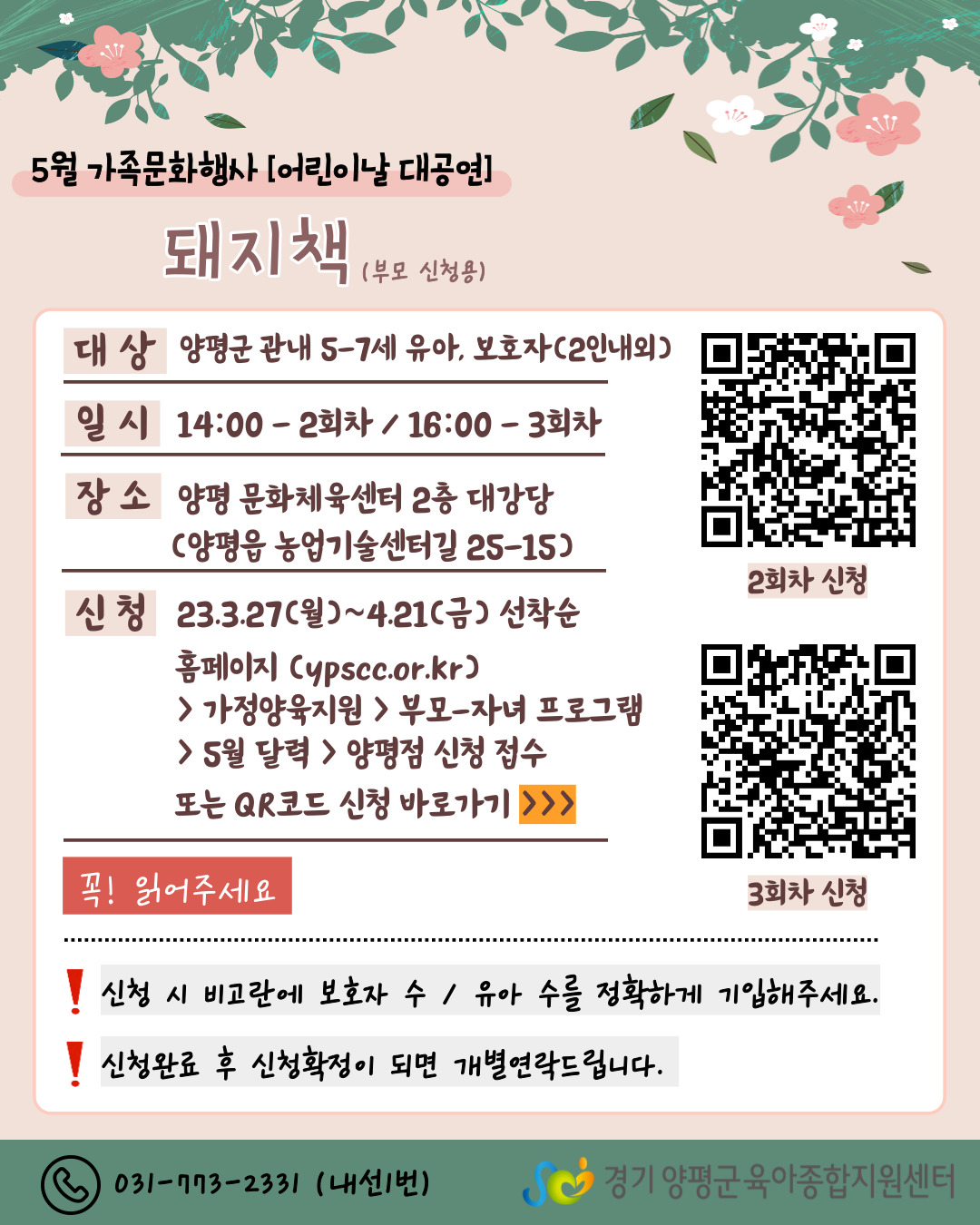 | 5월 가족문화행사 [어린이날 대공연-돼지책] / 3회차 (가정 대상) | |||