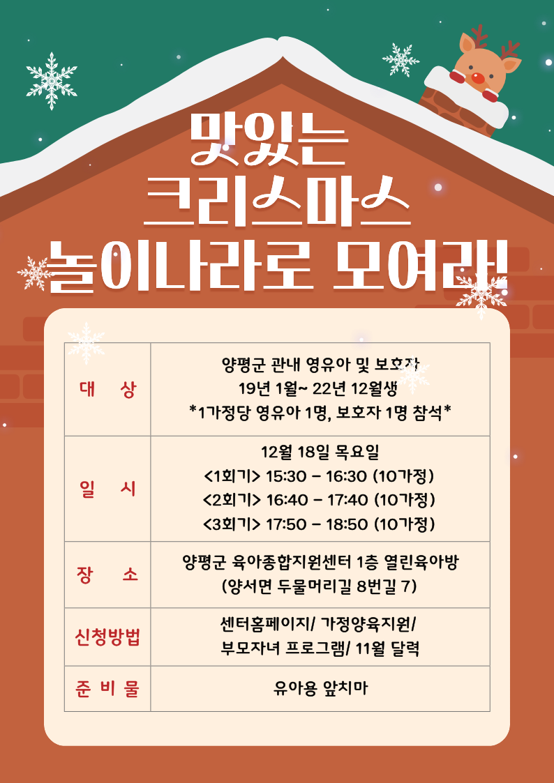 | [놀이지도사] 맛있는 크리스마스 놀이 나라로 모여라! <3회기> | |||