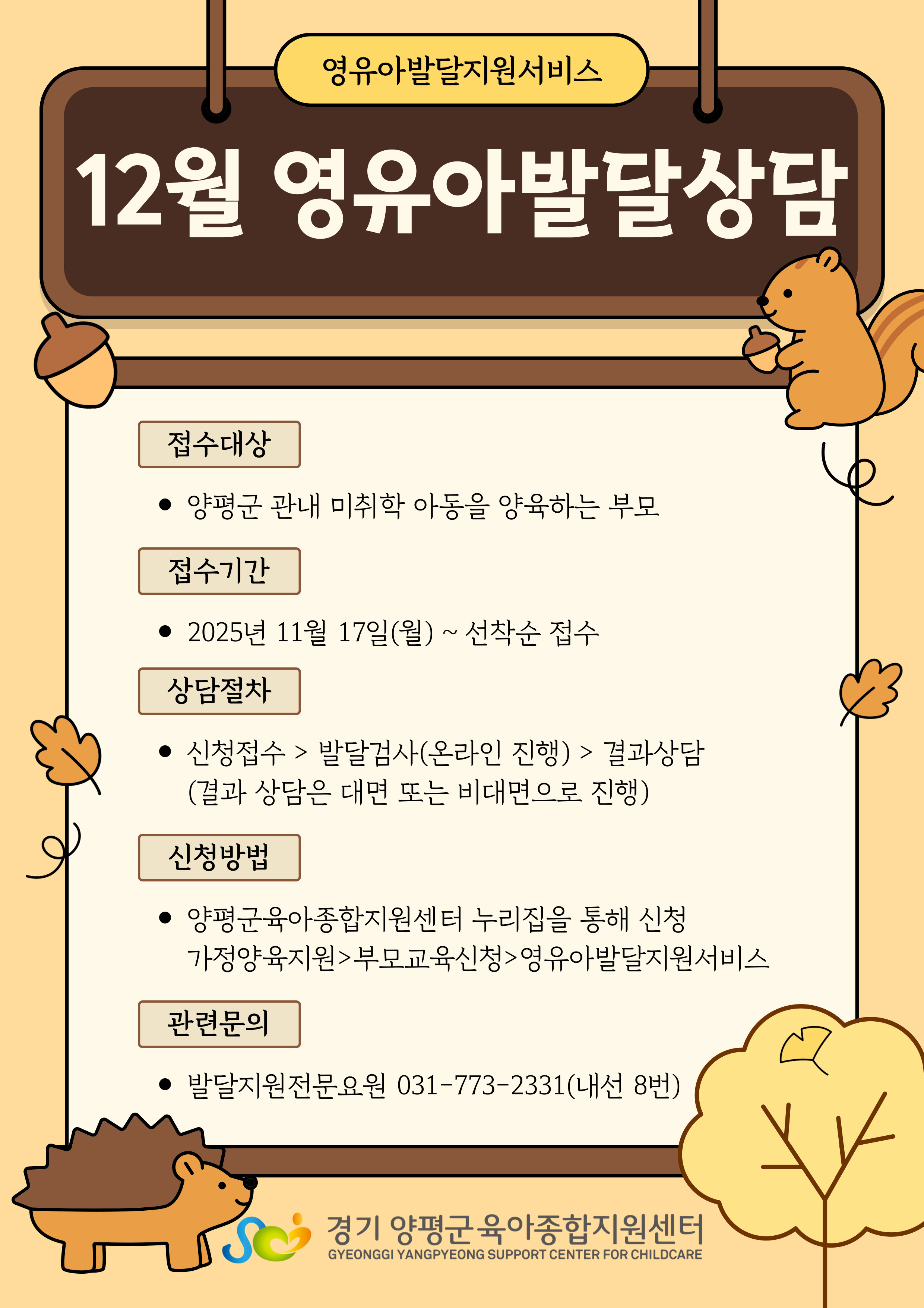 | [영유아발달지원서비스] 12월 영유아발달상담 신청 | |||