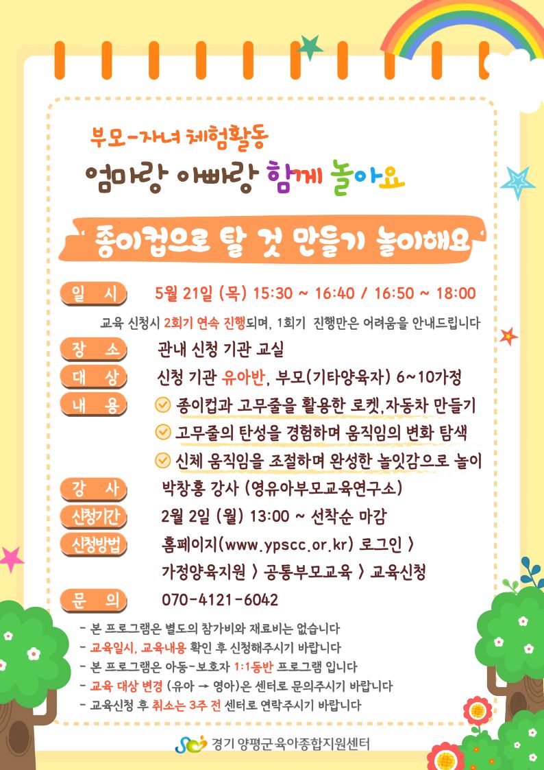 (기관신청)찾아가는 엄마랑 아빠랑 함께 놀아요 [종이컵으로 탈 것 만들기 놀이해요] 유아 (오후)