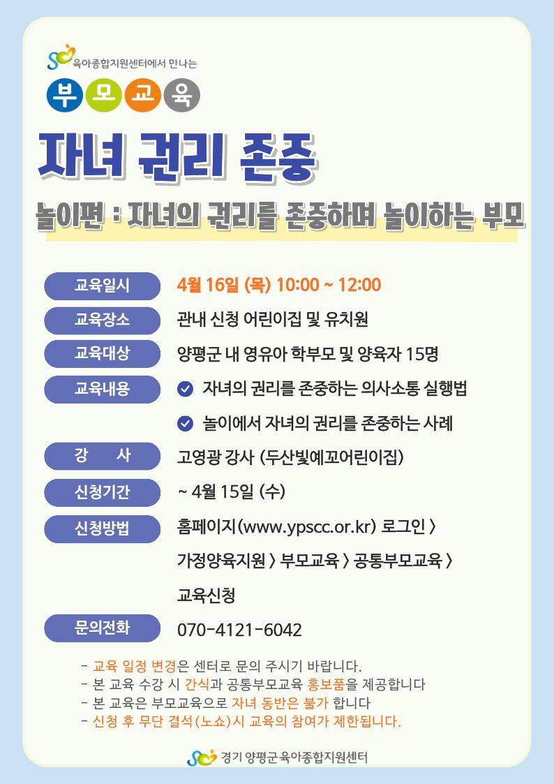 | (기관신청) 찾아가는 자녀 권리 존중 [놀이편: 자녀의 권리를 존중하며 놀이하는 부모] | |||
