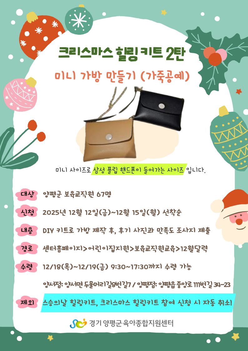 | 크리스마스 힐링 키트 2탄 - 미니 가방 만들기 | |||