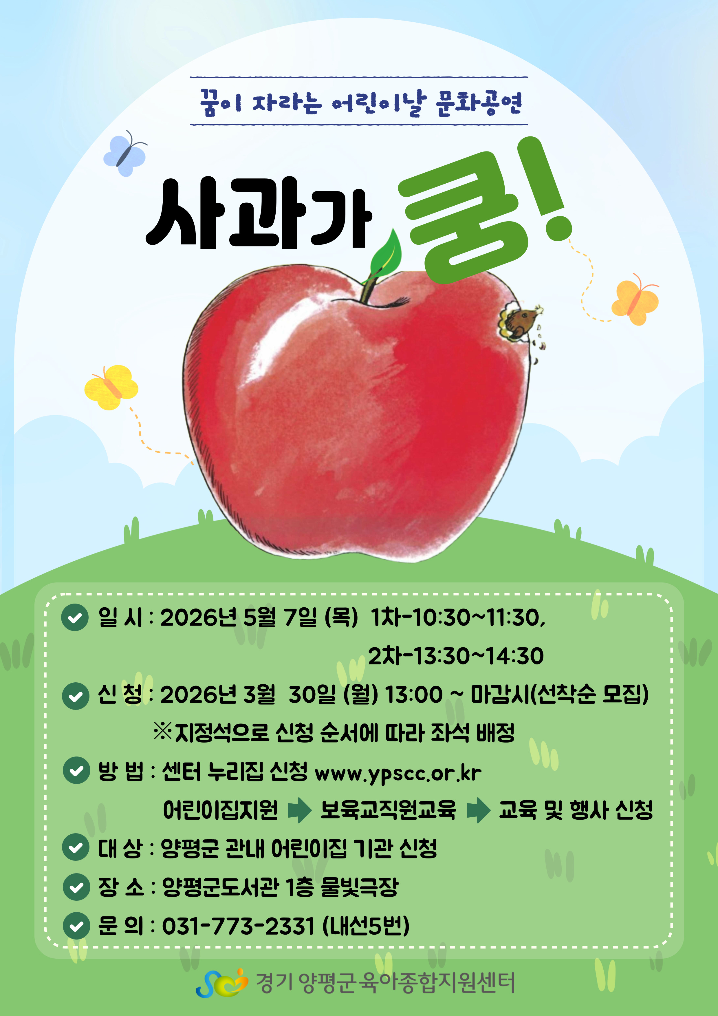 | [꿈이 자라는 어린이날 문화 공연] 2회차 (13:30~14:30) 사과가 쿵 | |||