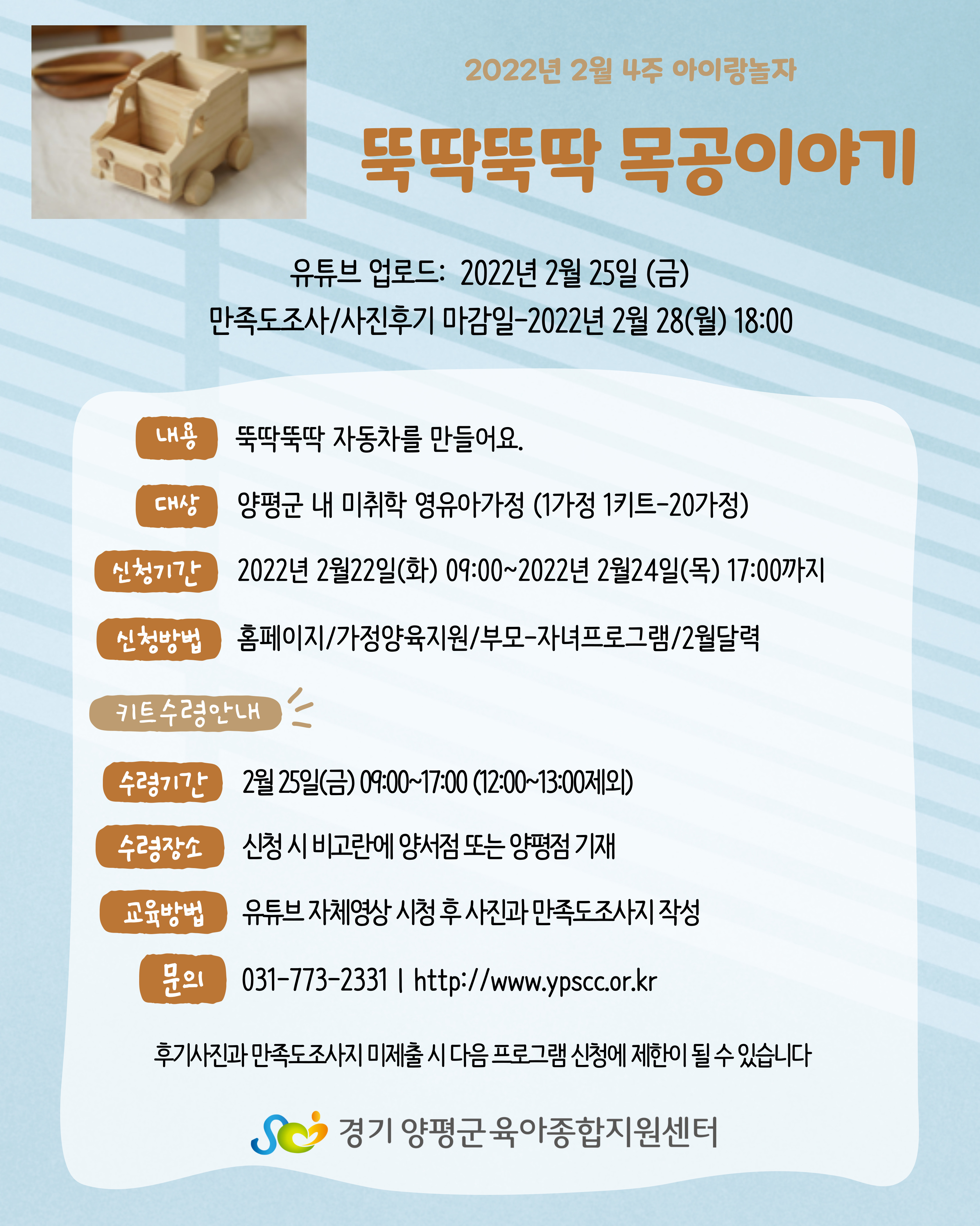 | 2월 4주 아이랑놀자 프로그램 - 뚝딱뚝딱 목공이야기 | |||