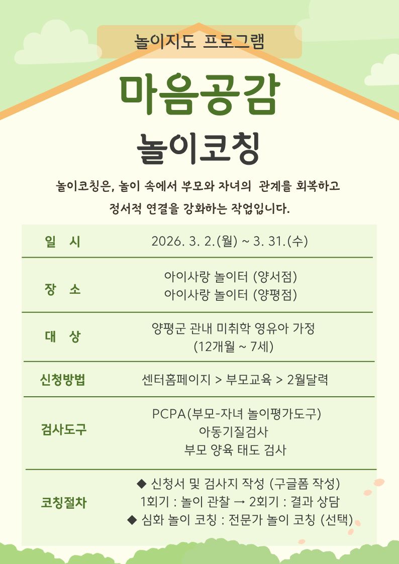 행복이 자라는 희망을 드리는 경기양평군육아종합지원센터 입니다.